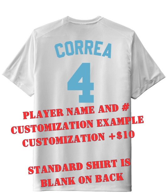 If you would like to add a player's name or number to a shirt, please email owner.teamupdesigns@gmail.com and we can set that up!