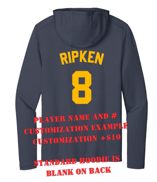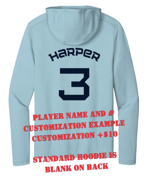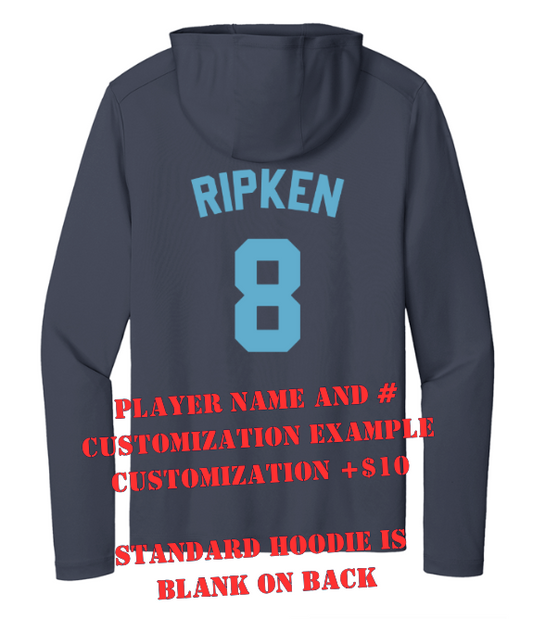 Mahtomedi Baseball - Men's - UPF50 Hoodie navy - jersey font baby blue (c)